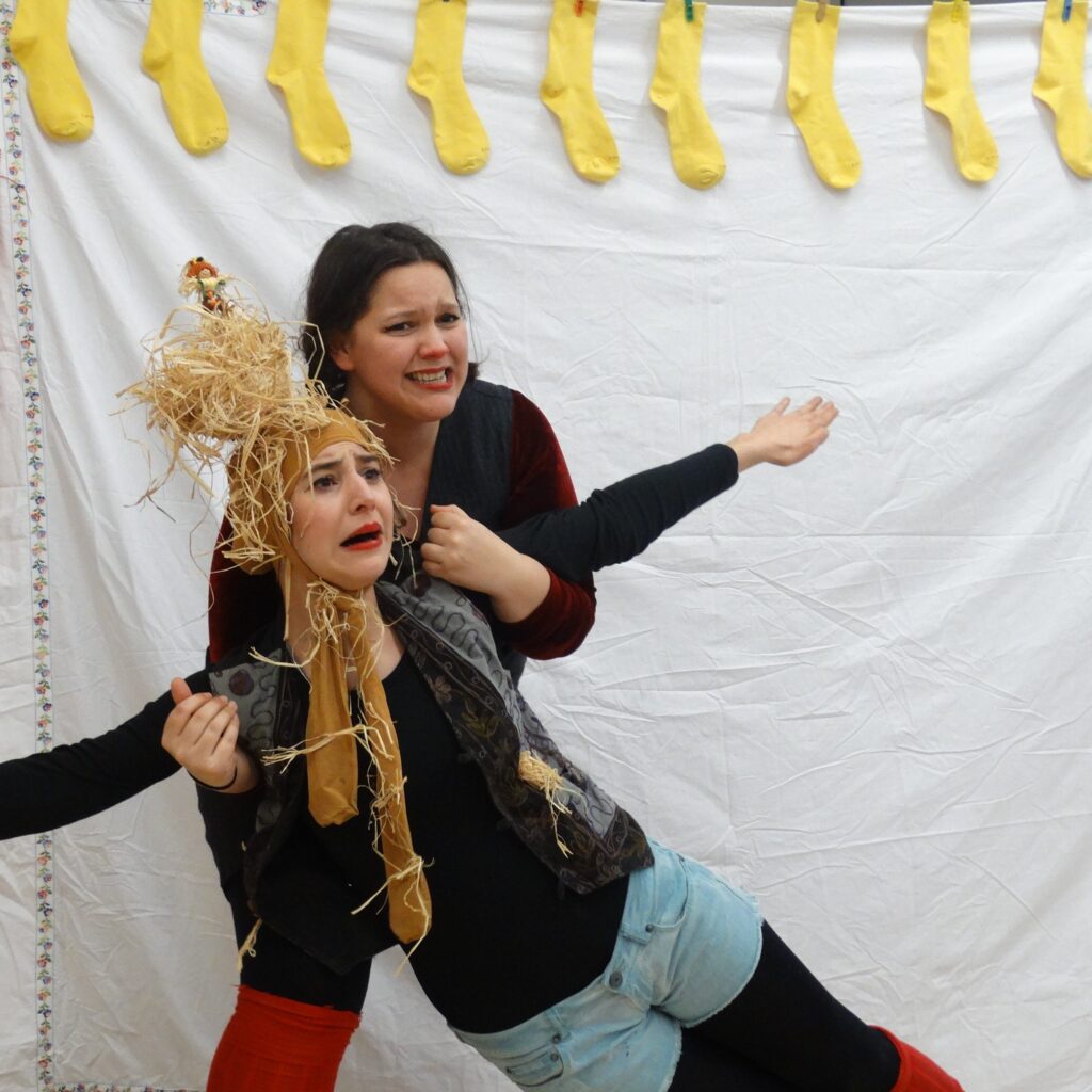 La Mitja i la Mitjoneta posen en dubte aquest conte tradicional als ulls de les més petites, que hauran de participar perquè les protagonistes puguin seguir amb la història.